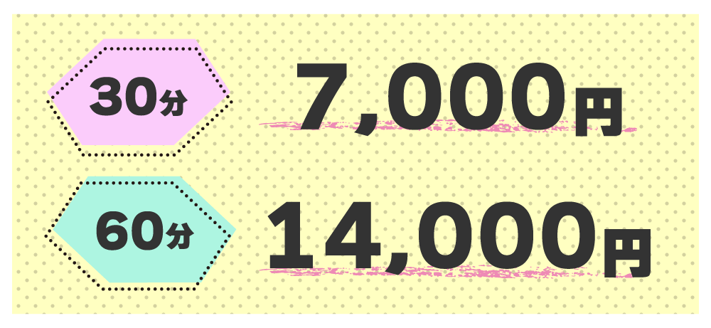 | お給料 | 30分 / 7,000円 60分 / 14,000円 頑張っているおんなのこにはボーナスあり! |